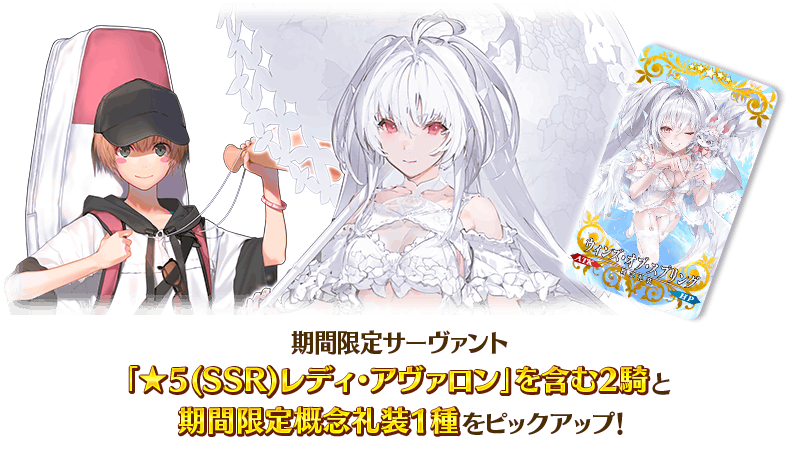 3100万DL突破を記念して、期間限定サーヴァント「★5(SSR)レディ・アヴァロン」を含む2騎と期間限定概念礼装1種をピックアップ!