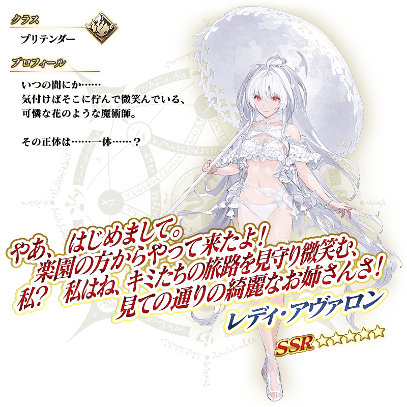 ※上記の「★5(SSR)レディ・アヴァロン」のイラストとセイントグラフは霊基再臨第2段階のものです。