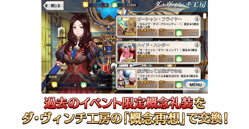ダ・ヴィンチ工房の「概念再想」に、過去の期間限定イベントで登場した概念礼装7種を恒常的に追加いたします!
