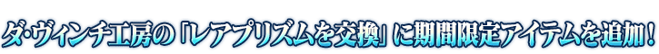 期間限定でダ・ヴィンチ工房の「レアプリズムを交換」に、下記のアイテムを追加いたします。