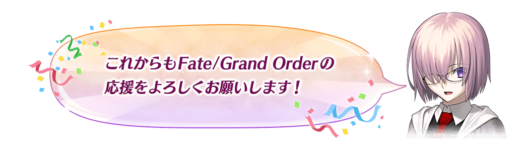 ※キャンペーン開始までに「特異点F 炎上汚染都市 冬木」をクリアしていない場合、クリアすることで受け取ることができます。 ※上記時間までに、ターミナル画面にあるクエストボードに「CLEAR」の文字が表示されている必要があります。 ※期間内にログインできなかった場合には受け取ることができません。 ※プレゼントは、1回のみの受け取りになります。