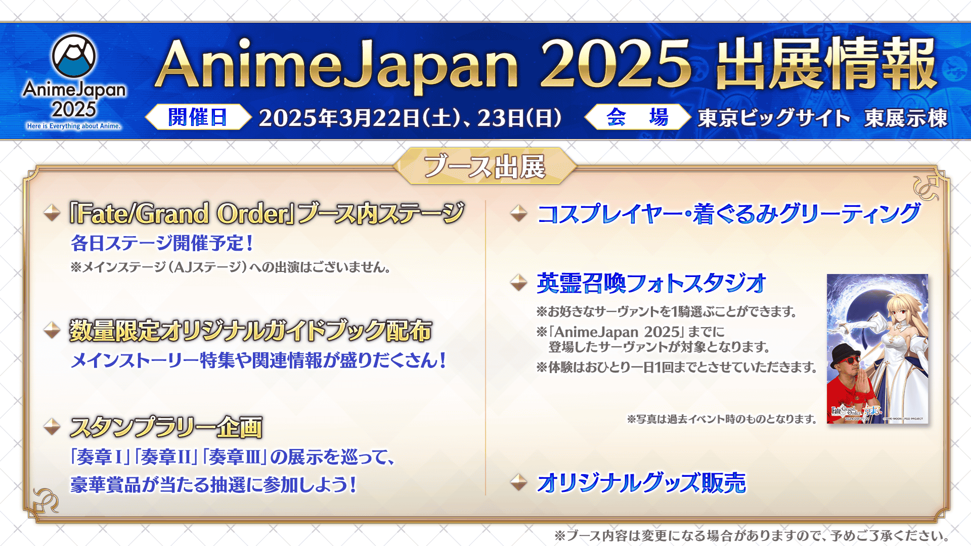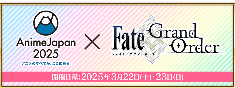 2025年3月22日(土)・23日(日)に東京ビッグサイトにて開催される「AnimeJapan 2025」に「Fate/Grand Order」ブースが出展いたします。