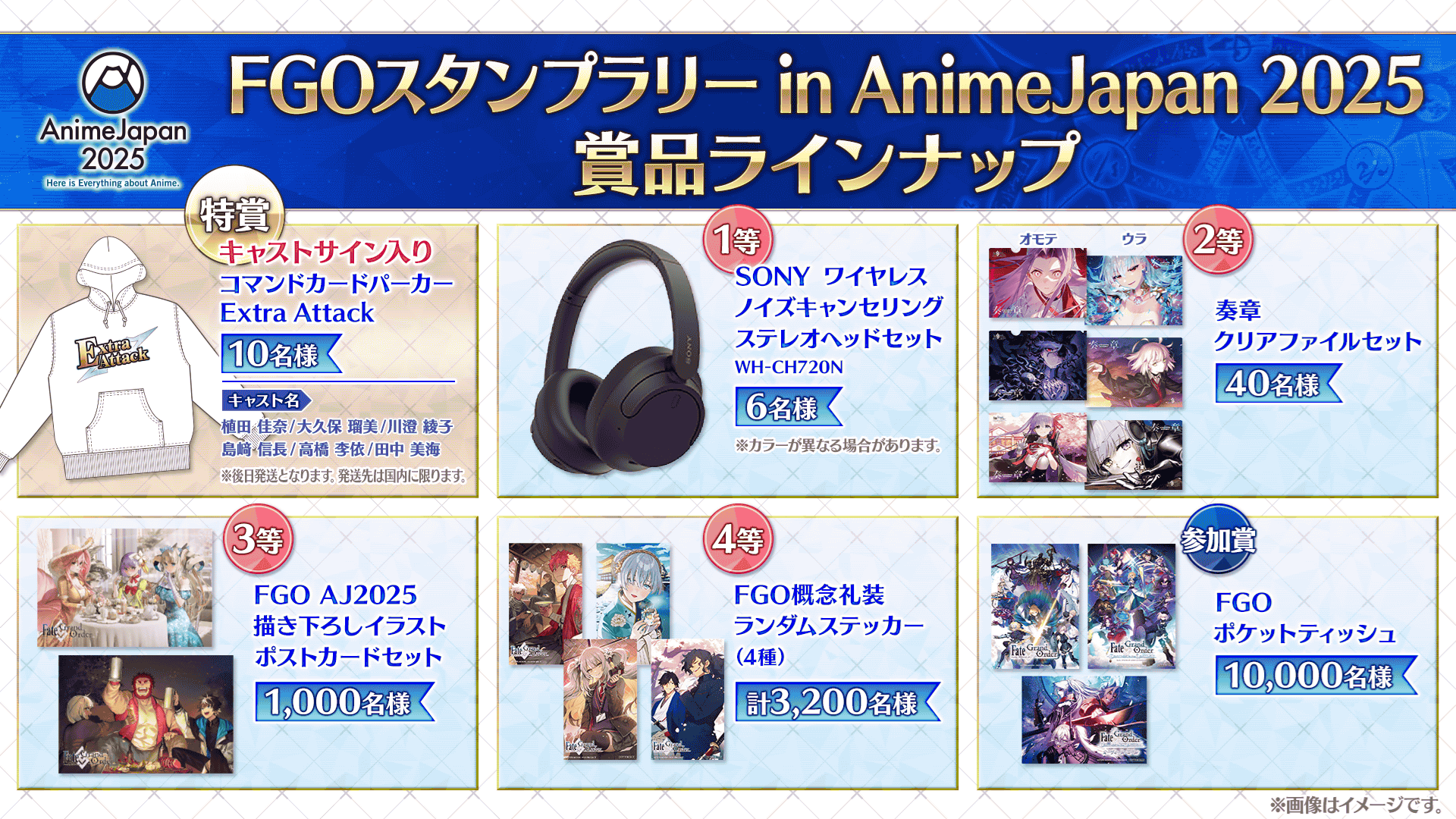 「FGOスタンプラリー in AnimeJapan 2025」の賞品ラインナップは以下になります。