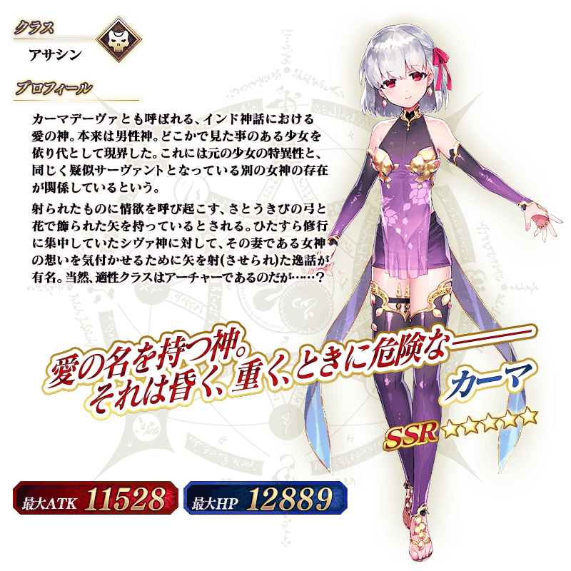 ※★4(SR)以上確定にはサーヴァントと概念礼装が含まれます。 ※アサシンクラス以外のサーヴァントも排出されますのでご注意ください。 ※「【週替り】アサシンピックアップ1召喚」より、「サーヴァント強化」のボードや一部フィルターに本召喚に関連する情報を追加しております。