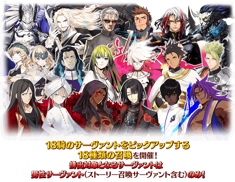 ※性別が「男性」のサーヴァントのほかに、下記のサーヴァントも排出対象に含まれます。