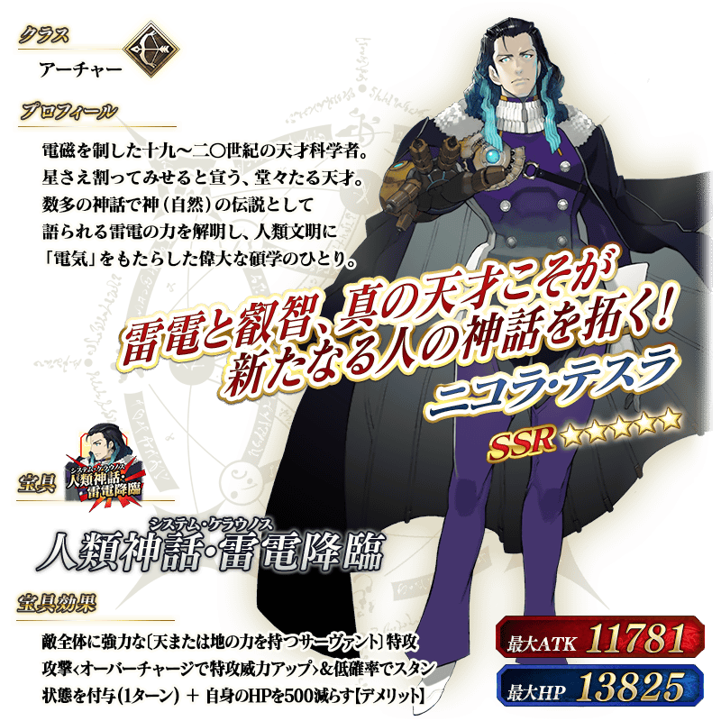 ※上記の「★5(SSR)ニコラ・テスラ」のイラストは霊基再臨第2段階のものです。