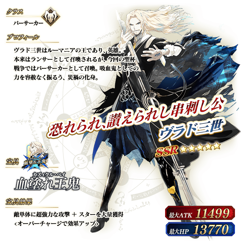 ※上記の「★5(SSR)ヴラド三世」のイラストは霊基再臨第2段階のものです。