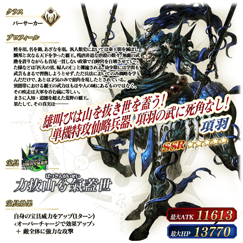 ※上記の「★5(SSR)項羽」のイラストは霊基再臨第2段階のものです。
