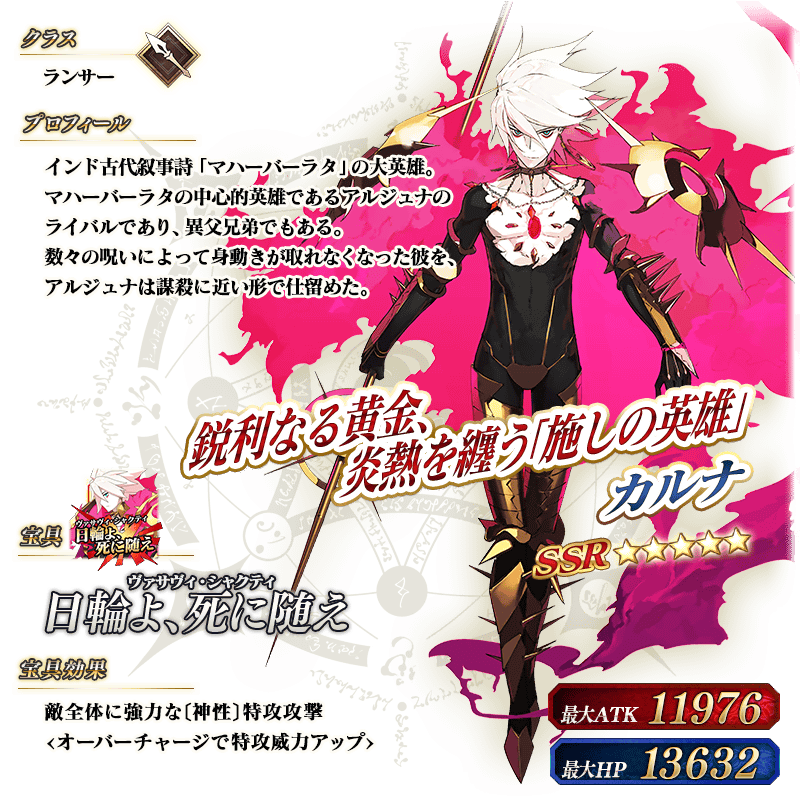 ※上記の「★5(SSR)カルナ」のイラストは霊基再臨第2段階のものです。
