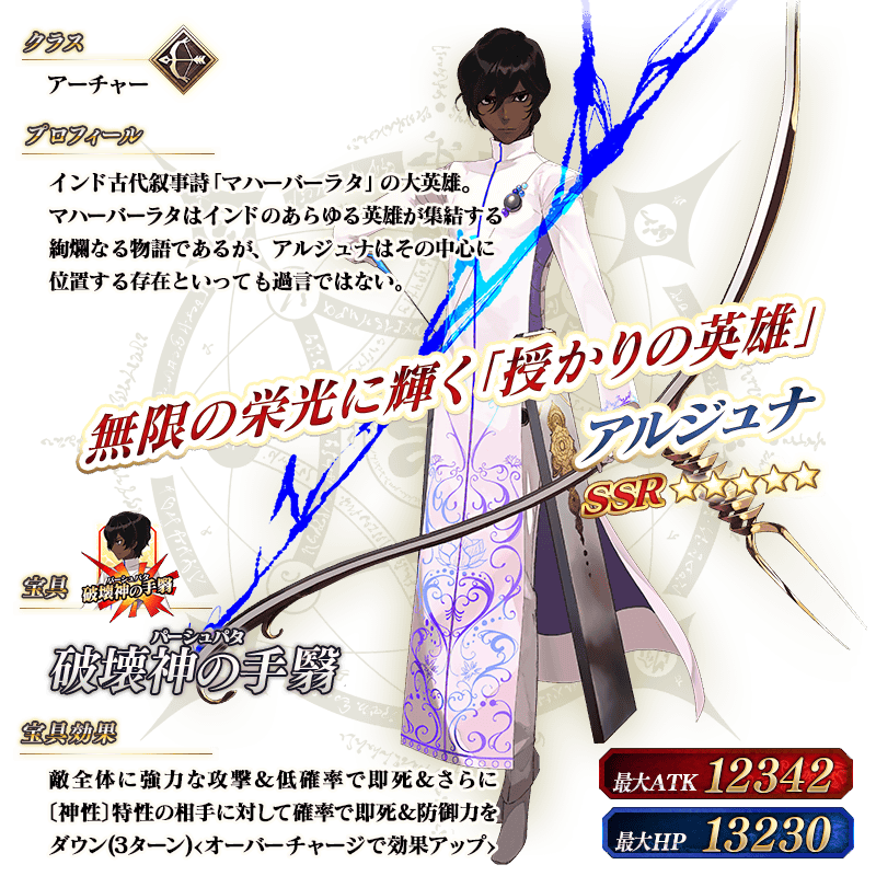 ※上記の「★5(SSR)アルジュナ」のイラストは霊基再臨第2段階のものです。