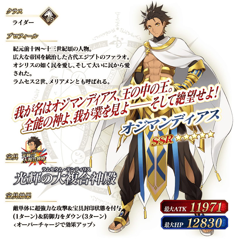 ※上記の「★5(SSR)オジマンディアス」のイラストは霊基再臨第2段階のものです。