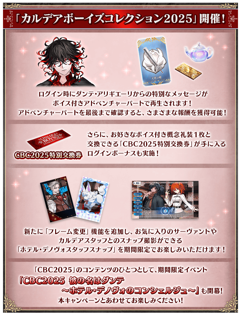 「CBC2025」とあわせて、期間限定イベント「CBC2025 彼の名はダンテ ~ホテル・デノヴォのコンシェルジュ~」も開幕いたします!