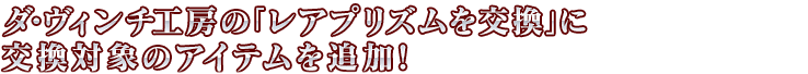 | 追加アイテム | 交換可能回数 | 1回の 交換に必要な レアプリズムの数 |