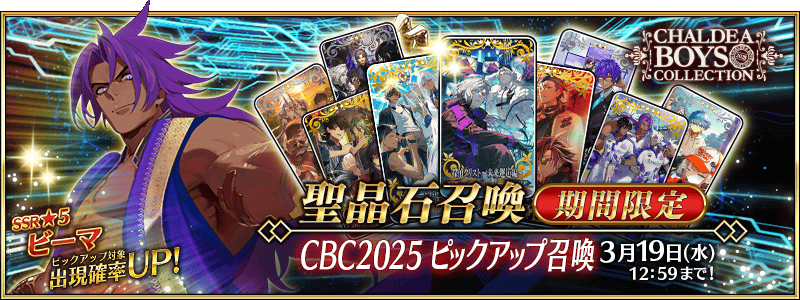 2025年3月5日(水) 20:00からのキャンペーン期間中にログインすると、「カルデアボーイズコレクション2025」の期間限定概念礼装1枚と交換できる「CBC2025特別交換券」をプレゼント!