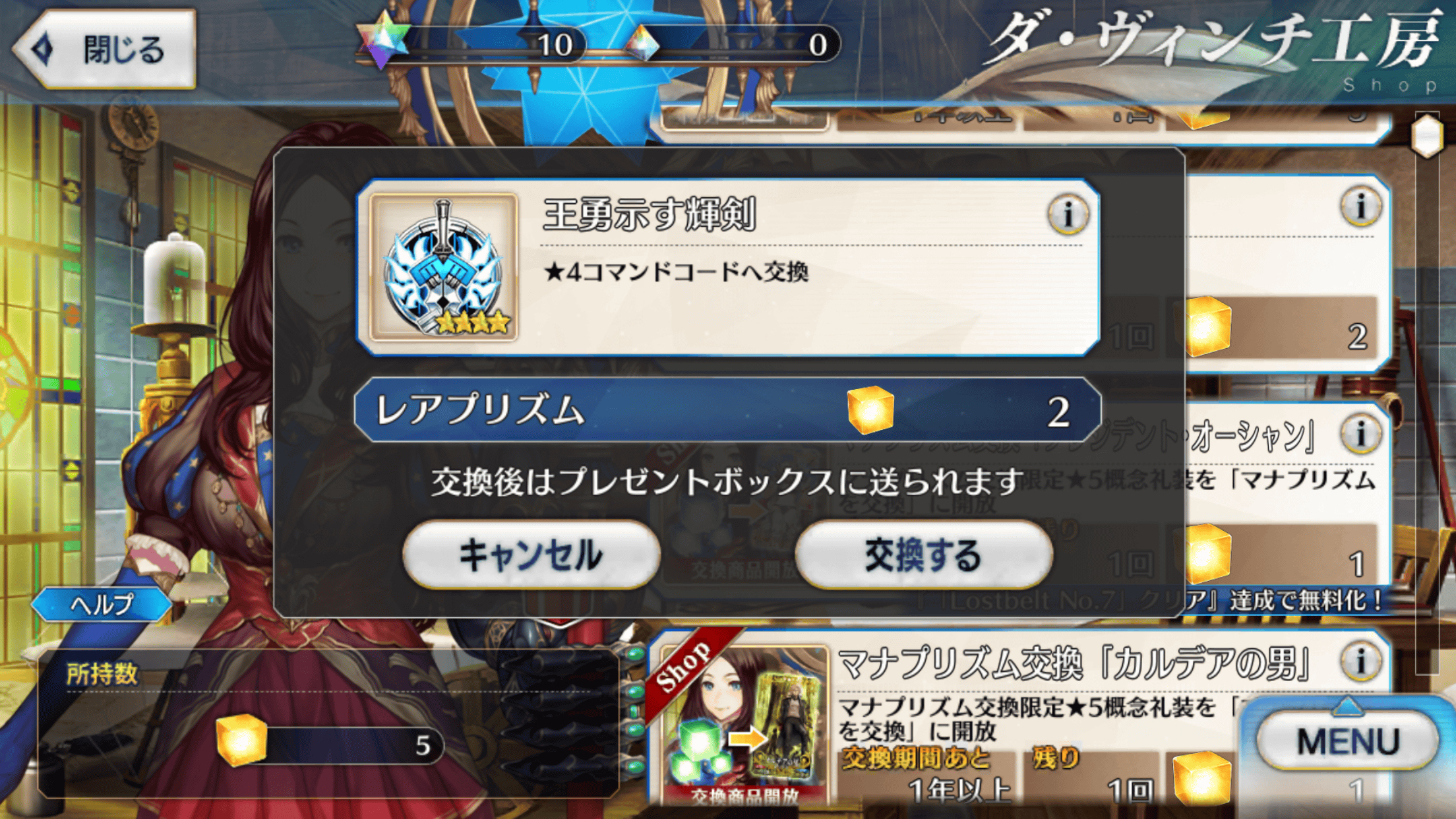 ダ・ヴィンチ工房の「レアプリズムを交換」に『「CBC2024」限定 概念礼装交換ショップ』を開放するアイテムを追加!