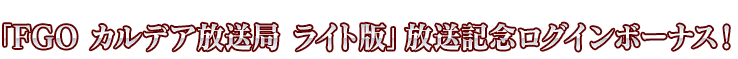 「Fate/Grand Order カルデア放送局 ライト版 CBC2025&新規イベント情報」におきまして、7万リポストを達成いたしましたので、放送記念ログインボーナスを実施いたします!