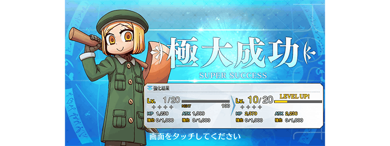 下記の期間中、サーヴァントの強化をおこなった際に、期間限定で大成功(経験値2倍ボーナス)・極大成功(経験値3倍ボーナス)の発生率が2倍になります!