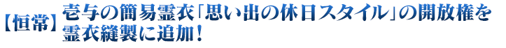 【恒常】壱与の簡易霊衣「思い出の休日スタイル」霊衣開放権を霊衣縫製に追加!