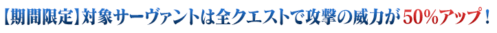 【期間限定】対象サーヴァントは全クエストで攻撃の威力が50%アップ!