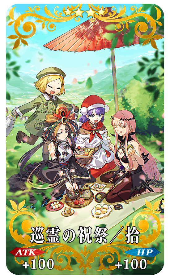 すべてのミッションをクリアすると、巡霊の葉100枚、伝承結晶1個、聖晶石10個に加えて、「巡霊の祝祭 第10弾」のメインビジュアルが描かれた特別な概念礼装を手に入れることができます!
