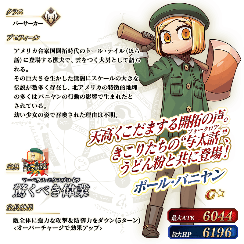 さらに、「★1(C)ポール・バニヤン」のサーヴァントコインが追加!