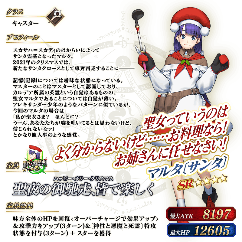 | +50% | キャスター | ★★★★ | マルタ〔サンタ〕 |