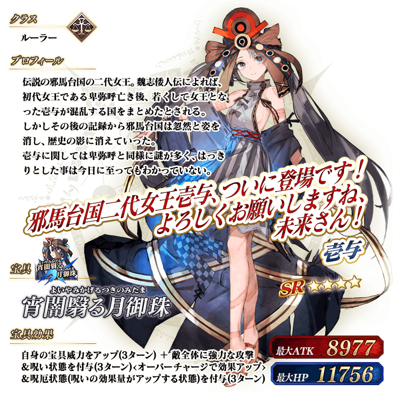 ※今回追加される「★4(SR)壱与」の霊衣は外見のみ変化し、ボイスは変化しない「簡易霊衣」です。