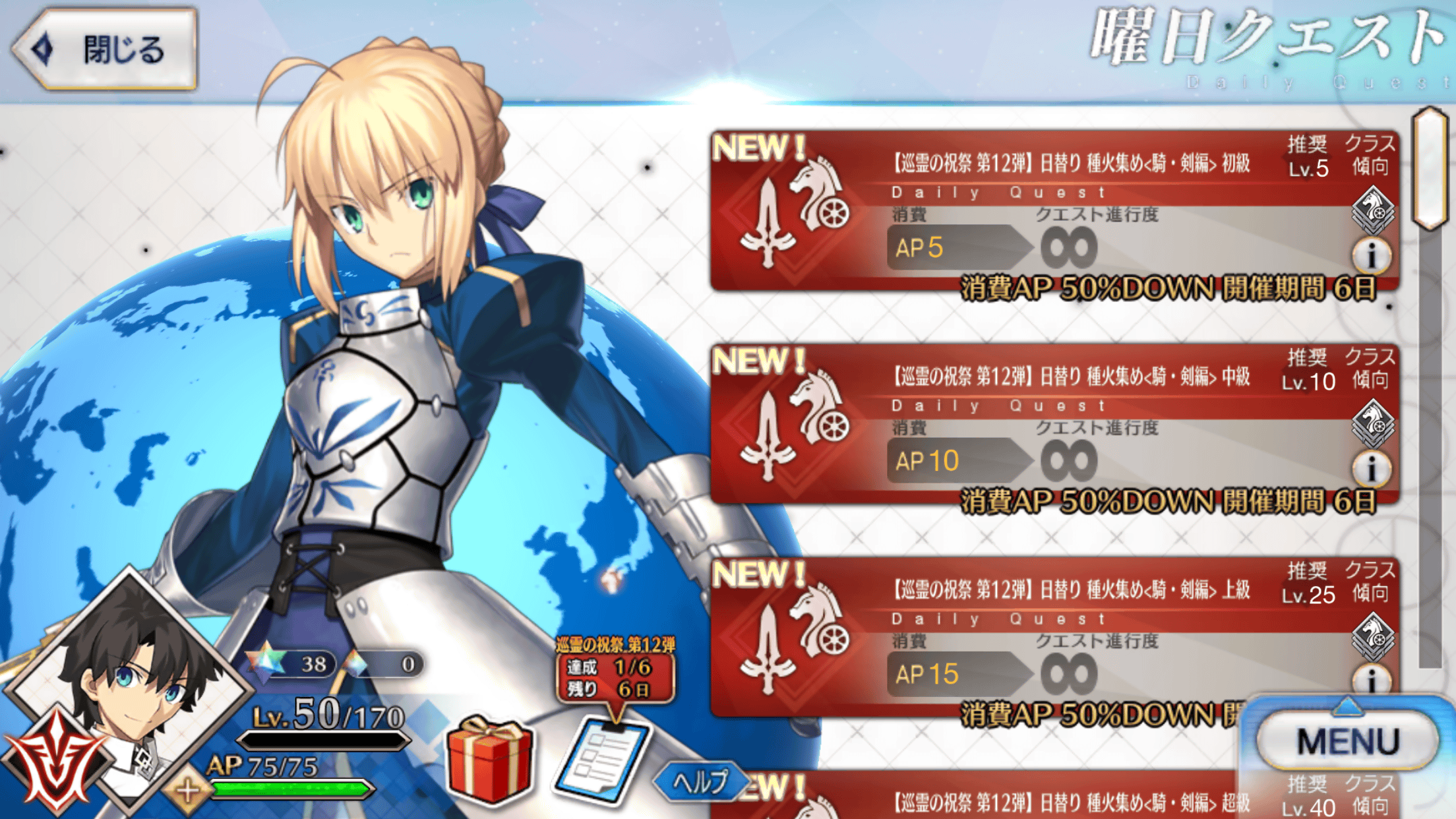 ・【巡霊の祝祭 第12弾】日替り 種火集め<騎・剣編>