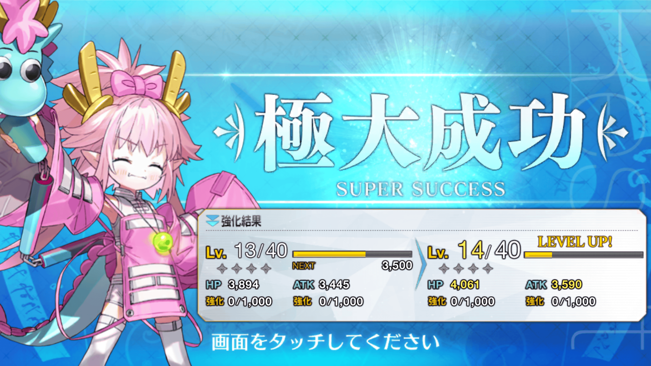 下記の期間中、すべてのサーヴァントの強化をおこなった際に、大成功(経験値2倍ボーナス)・極大成功(経験値3倍ボーナス)の発生率が期間限定で2倍になります!