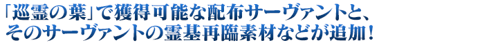 【巡霊の葉で獲得できる配布サーヴァントや霊基再臨素材などを追加!】