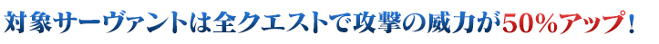 【期間限定】対象サーヴァントは全クエストで攻撃の威力が50%アップ!