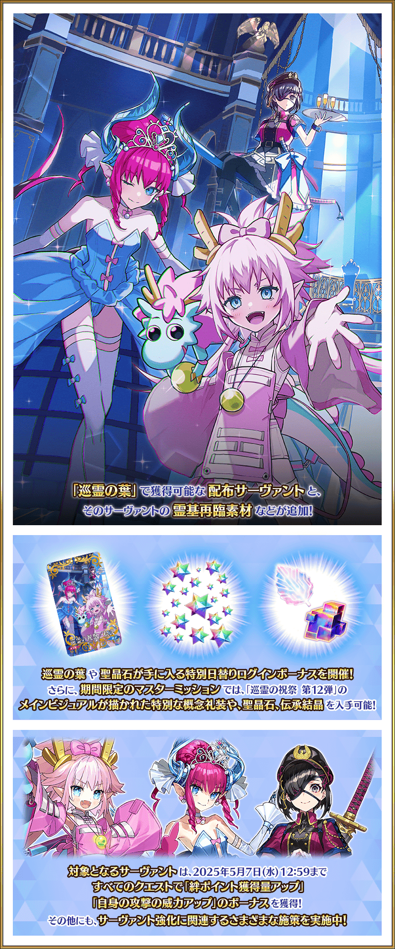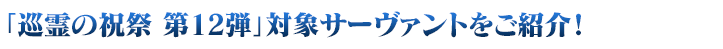 【「巡霊の祝祭 第12弾」関連サーヴァント強化のチャンス】