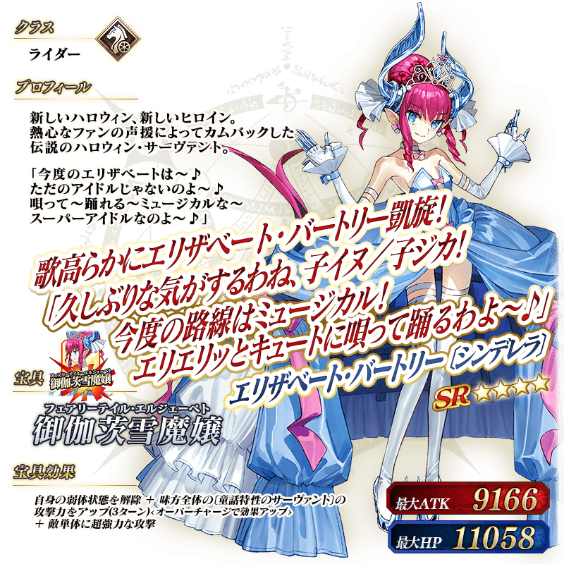 | +50% | ライダー | ★★★★ | エリザベート・バートリー〔シンデレラ〕 |