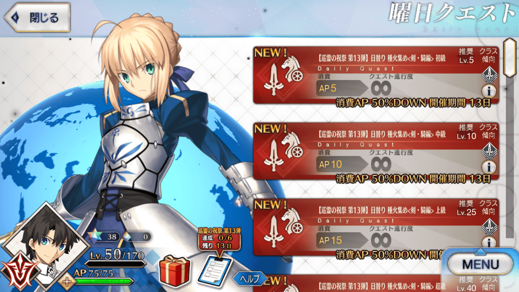 ・【巡霊の祝祭 第13弾】日替り 種火集め<剣・騎編>