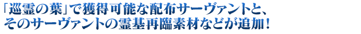 【巡霊の葉で獲得できる配布サーヴァントや霊基再臨素材などを追加!】