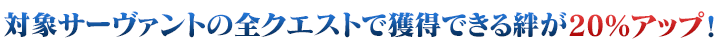 【期間限定】対象サーヴァントの全クエストで獲得できる絆が20%アップ!