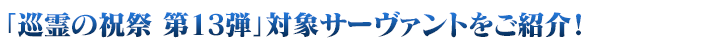 【「巡霊の祝祭 第13弾」関連サーヴァント強化のチャンス】
