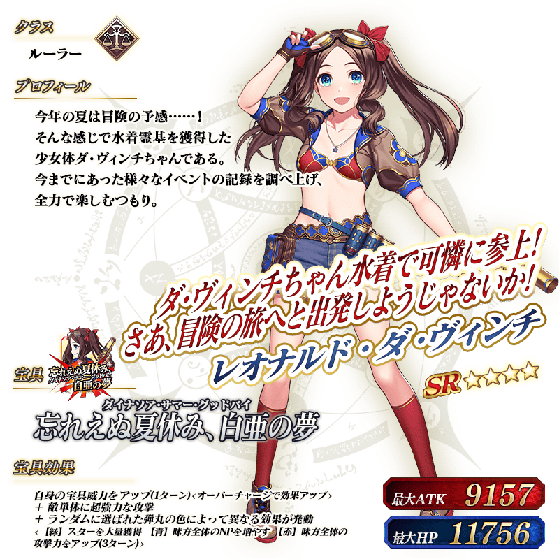 ※「★4(SR)レオナルド・ダ・ヴィンチ(ルーラー)」の一部宝具効果は、ランダムで変化します。