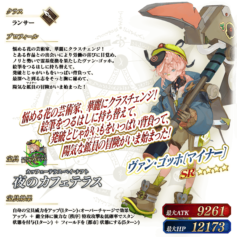 | +50% | ランサー | ★★★★ | ヴァン・ゴッホ〔マイナー〕 |