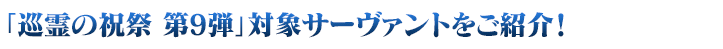 【「巡霊の祝祭 第9弾」関連サーヴァント育成のチャンス】