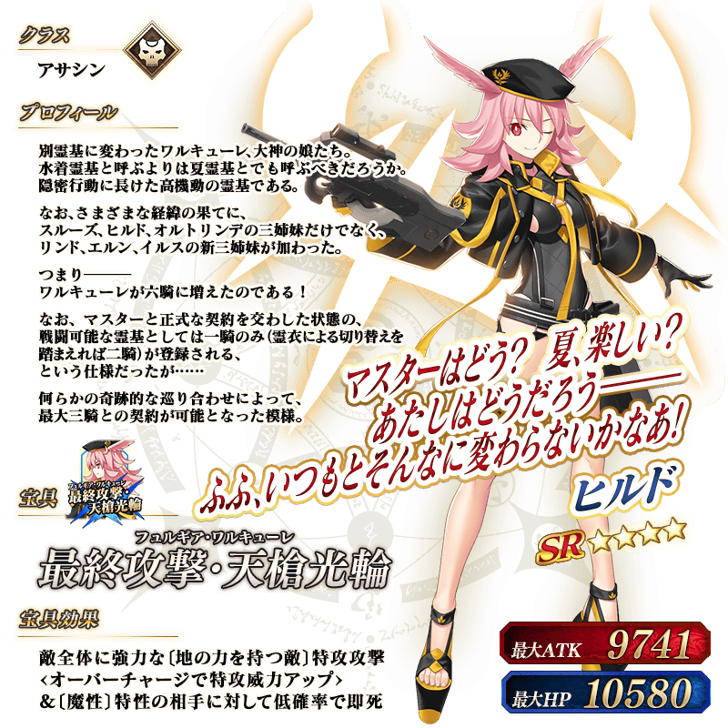 ※「★4(SR)ヒルド」と、霊衣「戦乙女エルルーン」の宝具演出を合わせてご紹介しております。