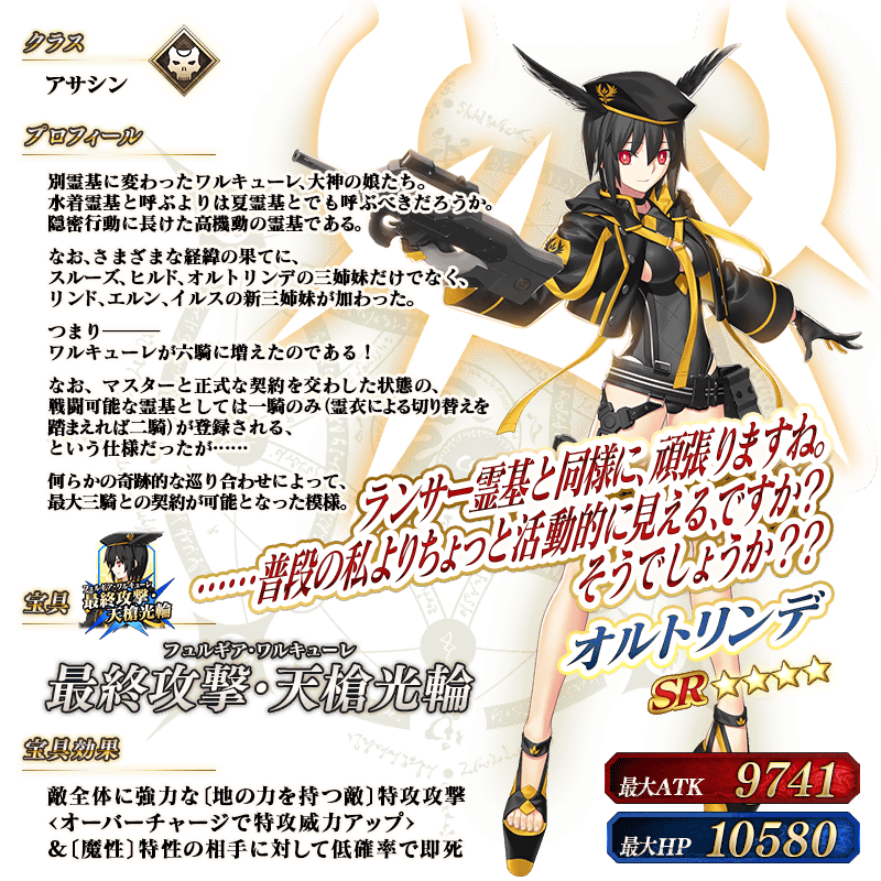 ※「★4(SR)オルトリンデ」と、霊衣「戦乙女ゲイルスケグル」の宝具演出を合わせてご紹介しております。