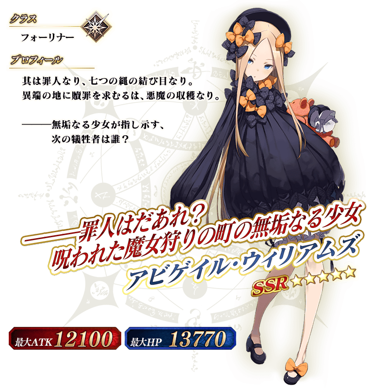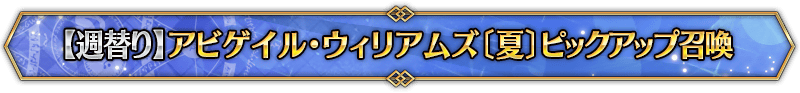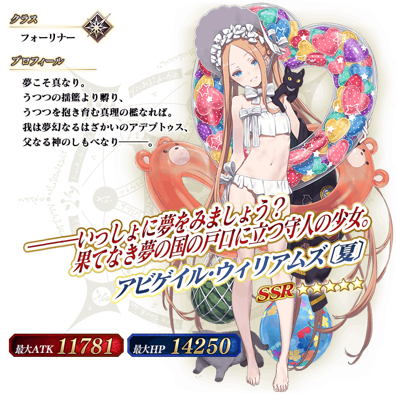 ※上記の「★5(SSR)アビゲイル・ウィリアムズ〔夏〕」のイラストは霊基再臨第3段階のものです。