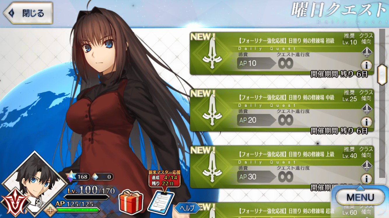 期間限定で、カルデアゲート内に曜日ごとに出現する「修練場」を期間限定で全種開放いたします。