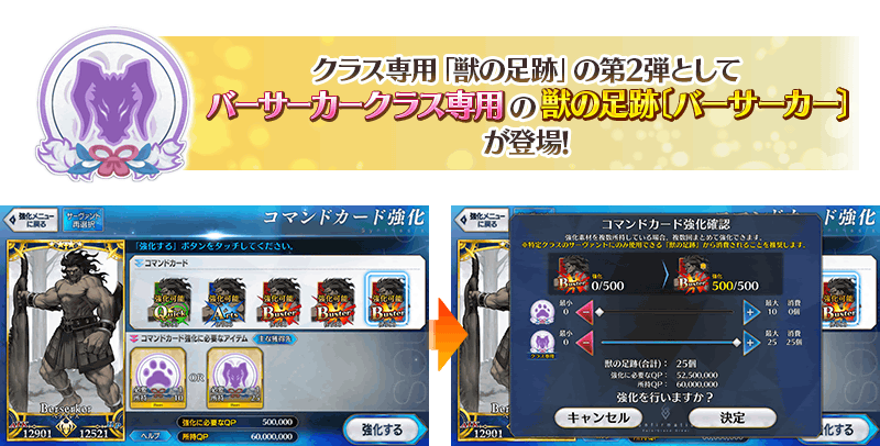 コマンドカードの強化に使用する「獣の足跡」にクラス専用のアイテムを追加いたします。