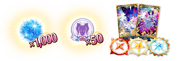 ミッションをクリアすることで極星のトーチ1個、明星のトーチ1個、新星のトーチ1個、星光の砂1,000個、英霊結晶・終局のフォウくんALL★5(HP)3枚、英霊結晶・原初のフォウくんALL★5(ATK)3枚、獣の足跡〔バーサーカー〕50個を獲得できます!