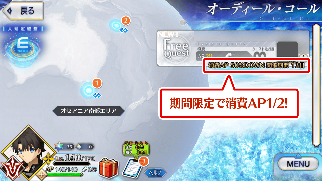 白紙化地球上のフリークエストにお得に挑戦できるこの機会をご活用ください!