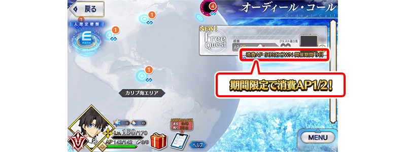 【期間限定】すべての白紙化地球フリークエストの消費AP1/2!