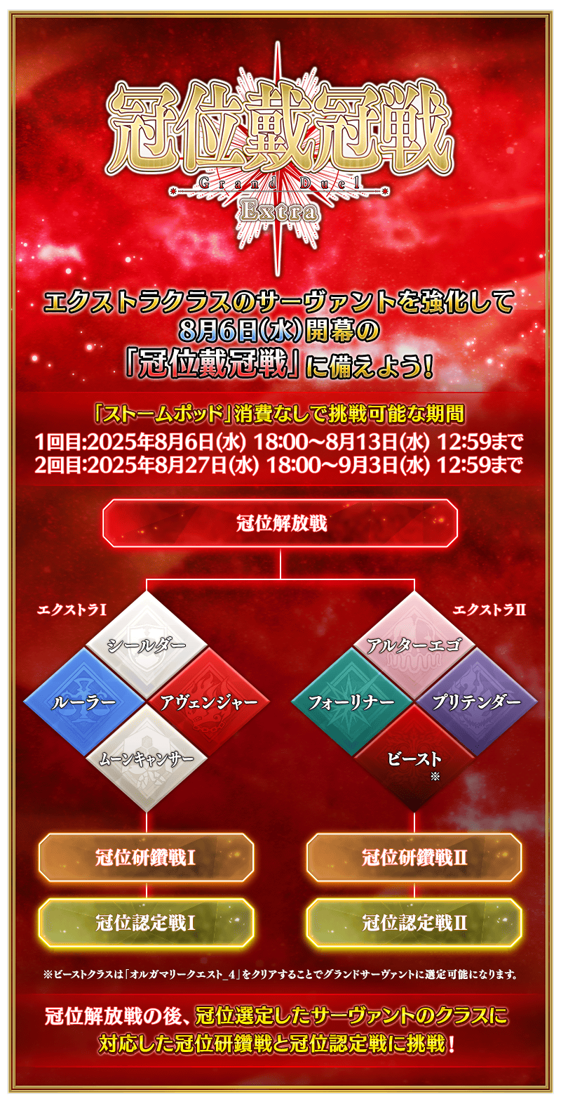 エクストラクラスの「冠位戴冠戦」は、2025年8月6日(水) 18:00に開幕予定!