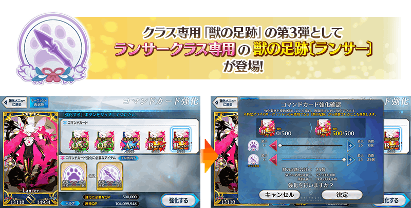 コマンドカードの強化に使用する「獣の足跡」にクラス専用のアイテムを追加いたします。
